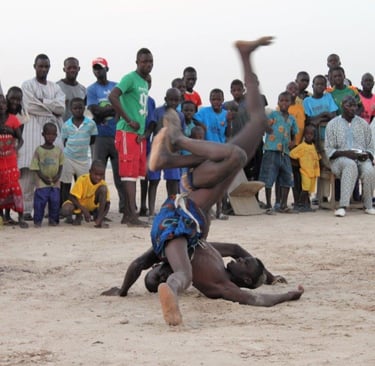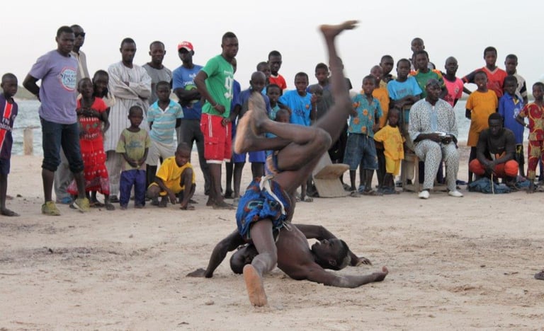 Assistez à un spectacle unique : la lutte sénégalaise, sport national et héritage culturel. Force, chants et tambours créent une atmosphère vibrante et authentique.